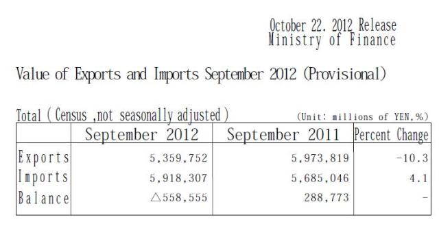 The deficit for the month was 558.6 billion yen ($7.2 billion), the Finance Ministry said Monday, higher than the forecasts of many analysts and bigger than a deficit of about $3.7 billion a year earlier. The deficit in August was $9.6 billion…