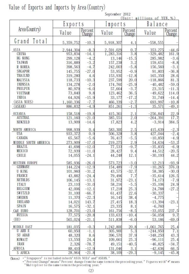 Great data from Japan’s Ministry of Finance (MOF) showing the sharp drop in exports to each of the country’s major trading partners.