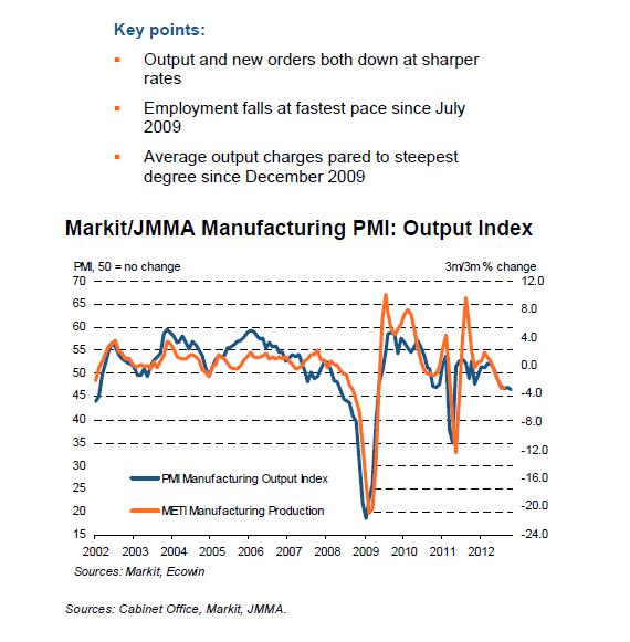 “The continuation of the soft patch that has been evident in the second half of the year in 2012 so far has also now spilt over into the labour market. Manufacturers cut jobs for the first time in six months during October – and at the sharpest pace since mid 2009.”