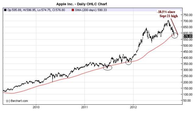 We posted yesterday how important Apple’s 200-day moving average is/was.