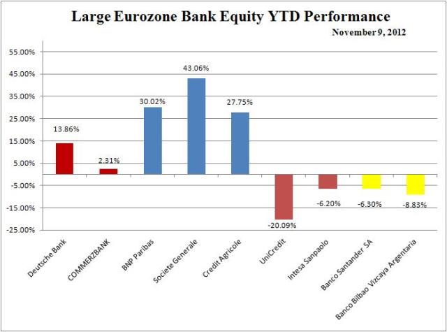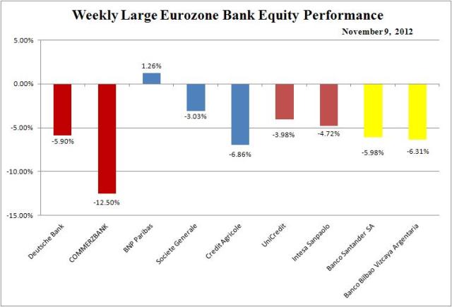 Large Eurozone banks down 1-10 percent;