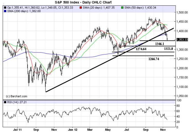 We do know fiscal cliff worries are dominating the market, the S&P500’s medium-term uptrend is broken, and the 200-day moving day has been violated. We now look to the Fibonacci retracement levels as the next key levels.