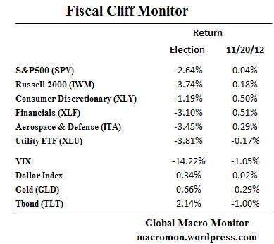 Stocks down hard; Russell 2000 down harder; consumer discretionary down hard; gold up; dollar down; VIX spiking; and defense stocks in the tank.