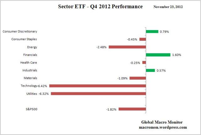 This entry was posted in Sector ETF Peformance and tagged Consumer Discretionary, Energy, Financials, Health Care, S&P500, Staples. Bookmark the permalink.