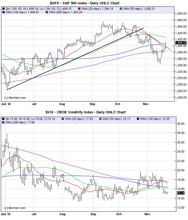One bullish sign and counter argument to last week’s low volume holiday trading in the U.S. is that the global markets also ramped hard. France and Germany were up over 5 percent. And though the Shanghai continues to trade poorly, the Hang Seng, our favorite indicator species for global risk appetite, was up 3.57 percent and only about 1 percent from a 52-week high.