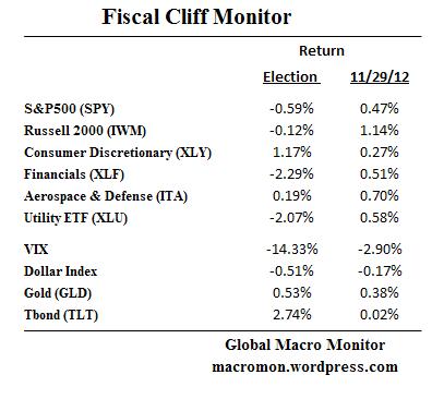 As we have experienced over the past few days betting on going over the fiscal cliff is not without risk. With so many running money, so far behind their benchmarks, December is about to get very interesting. The market feels it is spring loading for a huge pop on any sign of movement toward a deal.