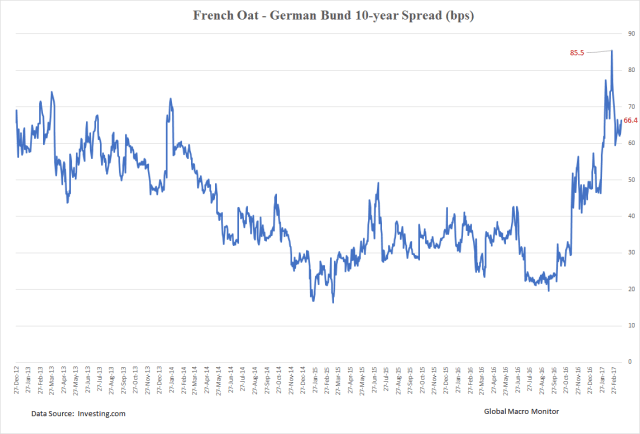 We were surprised that the setback to European populism given Wednesday’s defeat in the Netherlands did not result in a further tightening of the Oat-Bund spread, which widened a de minimis 3 bps this week.