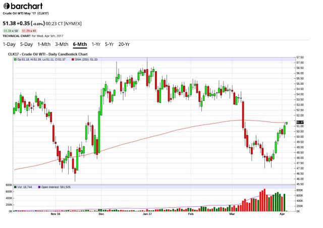 The May Crude Oil futures contract has regained its 200-day moving average in overnight trading. Significant.