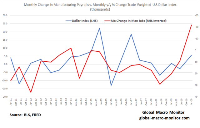 Not a very bankable analysis but does give you sort of a sense and story of what’s going with employment in the manufacturing sector, which, by the way, is also very sensitive to the movements in the dollar. We highly recommend you check it out for yourself.