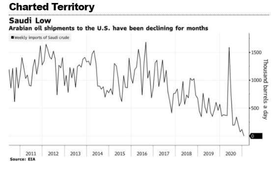 The U.S. didn’t import any Saudi crude last week for the first time in 35 years, a reversal from just months ago when the Kingdom threatened to upend the American energy industry by unleashing a tsunami of exports into a market decimated by the pandemic. – Bloomberg, Supply Lines