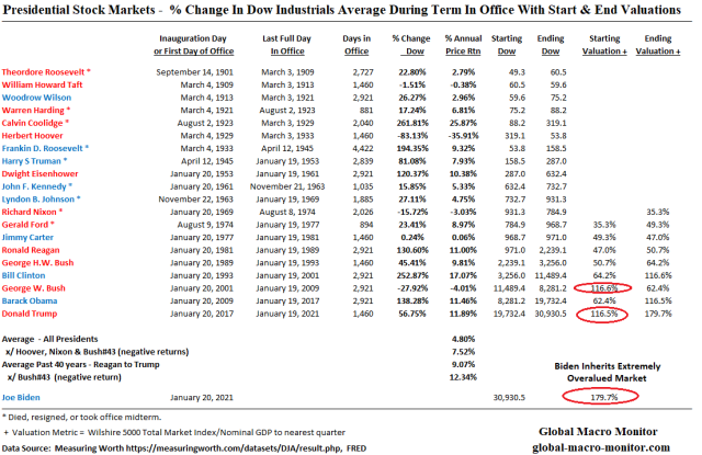 Given the intial valuation of a 180 percent stock market capitalization to GDP, either Joe Biden will be the first Demcorat with an negative stock market or the country is heading toward hyperinflation. When you figure that out let us know.