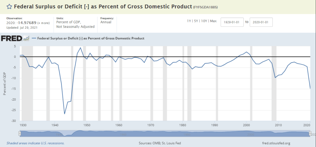 Looks like the U.S. budget deficit is going to come in around 12 percent of GDP for Fiscal 2021, which puts it in WWII territory. The only possible way Inflation will be “transitory” (the Ice Age was transitory, by the way) is the deficit is slashed in half over the next few years but that will be painful.