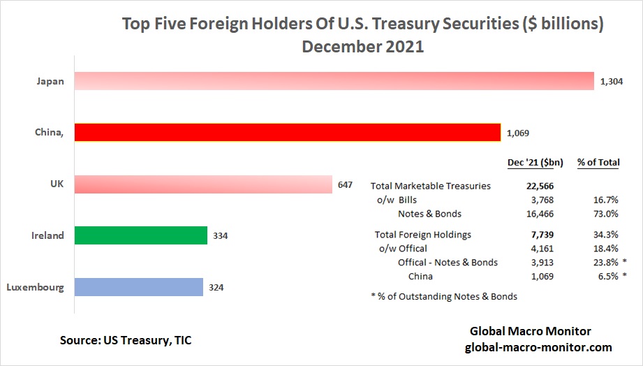 If, say, China begins to dump their Treasury holdings rapidly, it could very well signal they are preparing to take Taiwan. Just a theory and a hypothetical, or it could be they are becoming more politically risk-averse and hedging after observing what happened to Russia’s central bank.