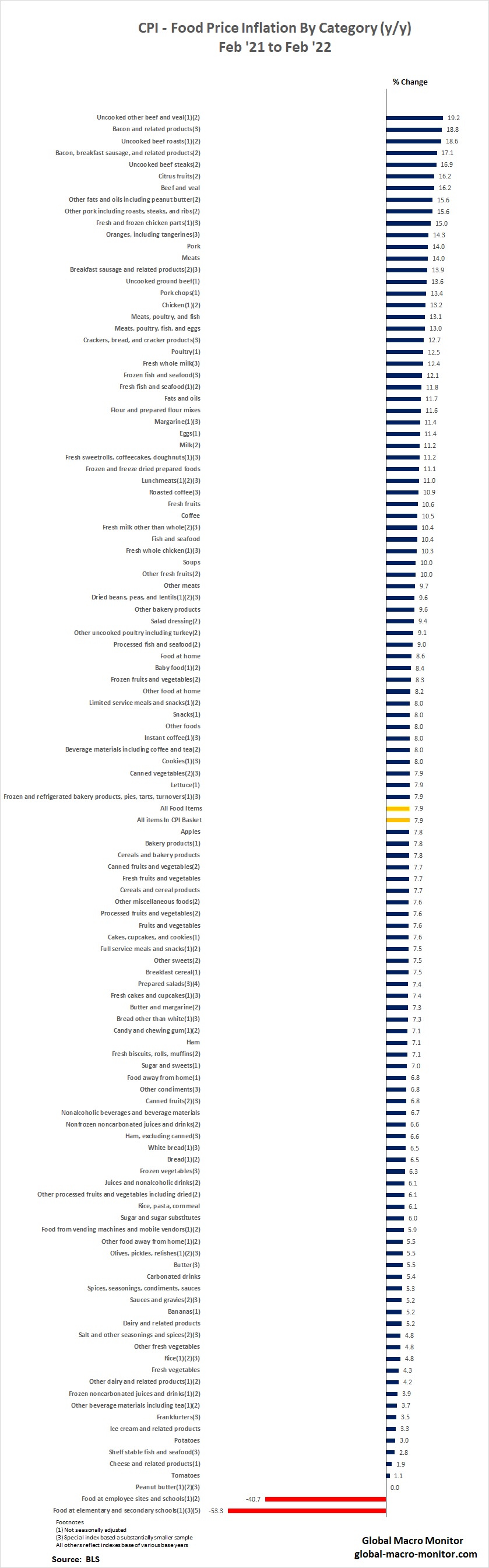 percent in February and 7.9 percent y/y. All food items were up 1.0 percent in