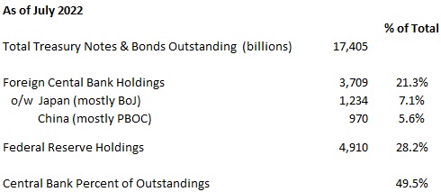 Central banks, both foreign and the Fed, who are and have never been price and market sensitive, have been the predominant buyers of Treasury coupon securities over the past 20 years.
