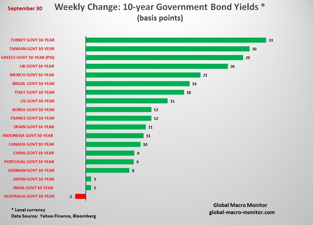 This entry was posted in Interest Rate Monitor and tagged Global Bond Yields, Global Commodities, Global Currencies, World Stock Markets. Bookmark the permalink.