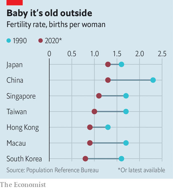 South Korea faces an existential crisis with a plunging birth rate. The country has the lowest fertility rate in the world, reaching the “dead cross,” when deaths outnumbered births, in 2020, a decade earlier than expected. South Korea’s statistics agency put the fertility rate at 0.81 for 2021; by the third quarter of 2022 it was 0.79. The country’s patriarchal society and misogyny deserves much blame. See here.