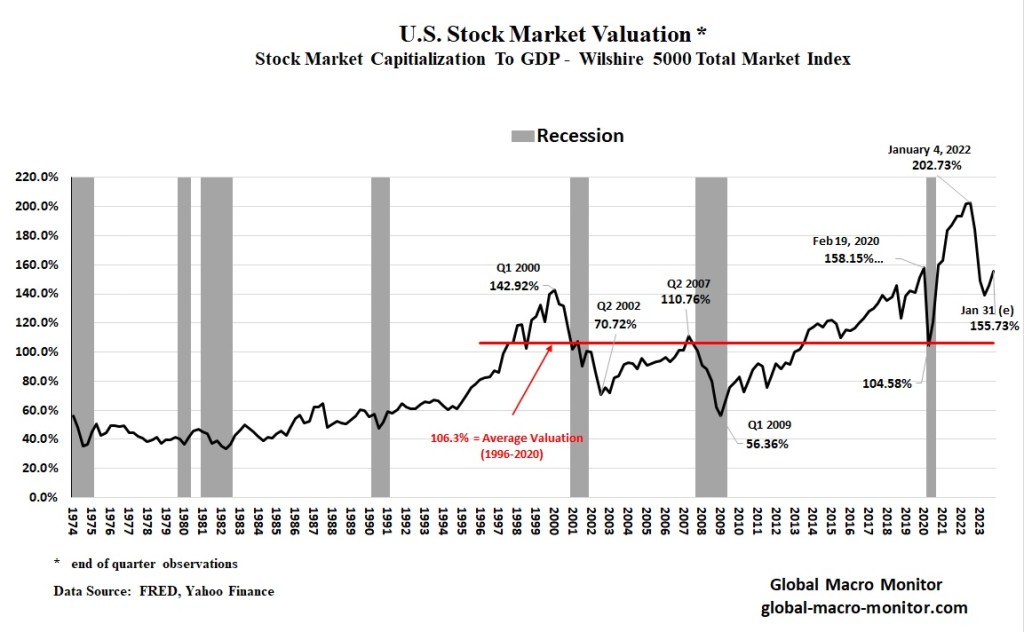 The following chart suggests the stock market still has an outsized influence on the economy. In theory, the market capitalization to GDP ratio should be a mean reverting time series.