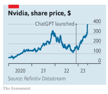 Today it holds over 80% of the market in specialist AI chips…Even if AI mania cools, the technology is bound to be more useful than crypto, another craze that Nvidia cashed in on. – Economist