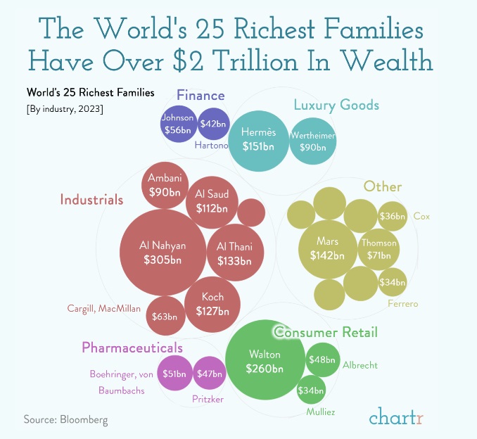 Note the Musk, Bezos, and Gates families are excluded because their wealth was self-made. Good for them!