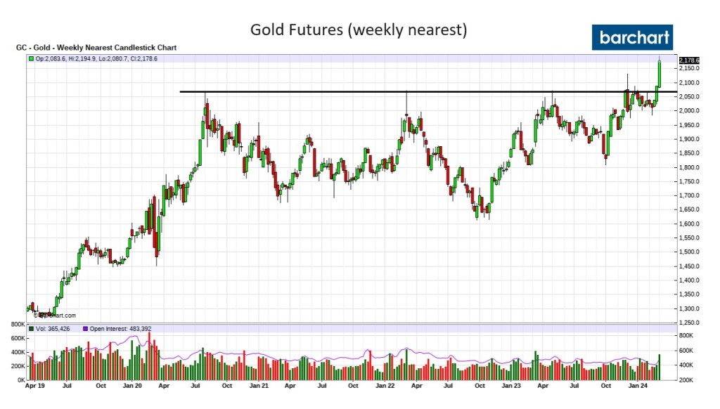 Gold is breaking out to new all-time highs. The market’s conventional wisdom is that it is mainly driven by the expectation the Fed will cut rates in June.   The dollar index (dominated by the euro) is still up over 1 percent for the year.