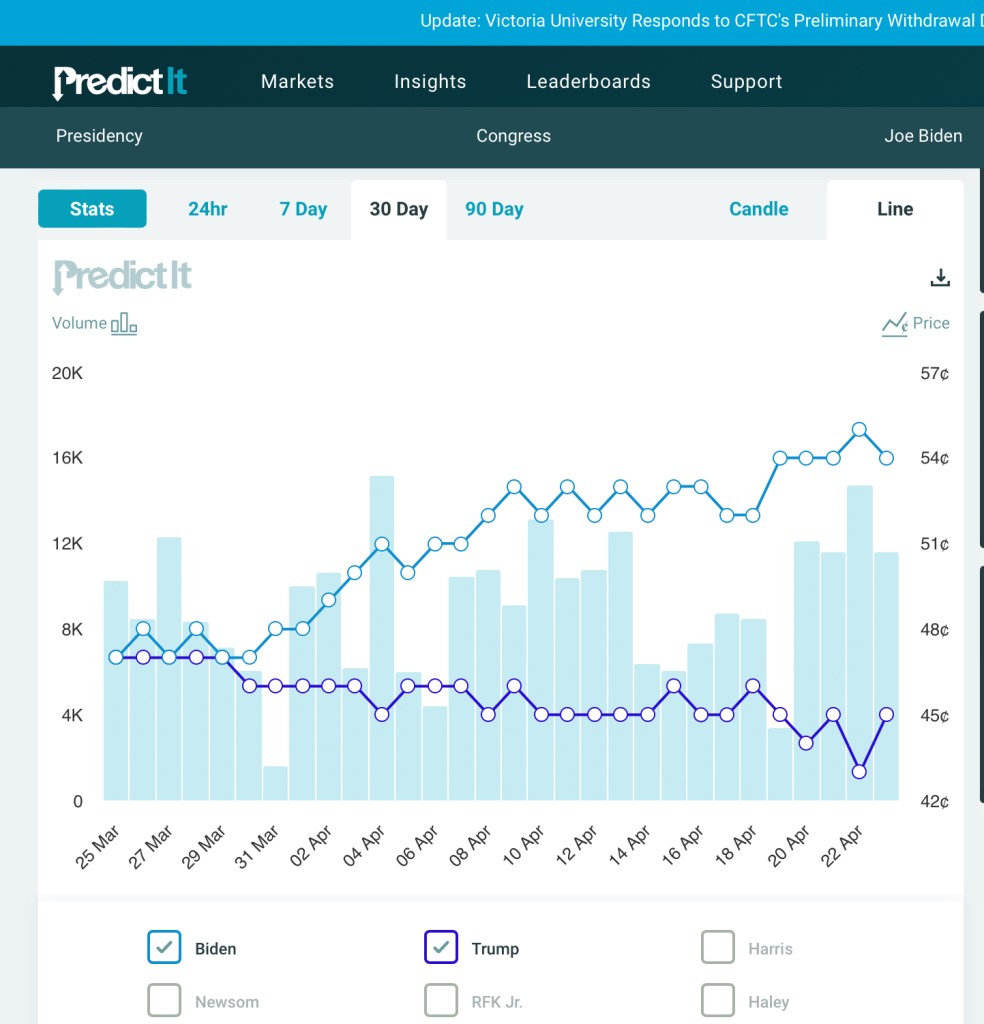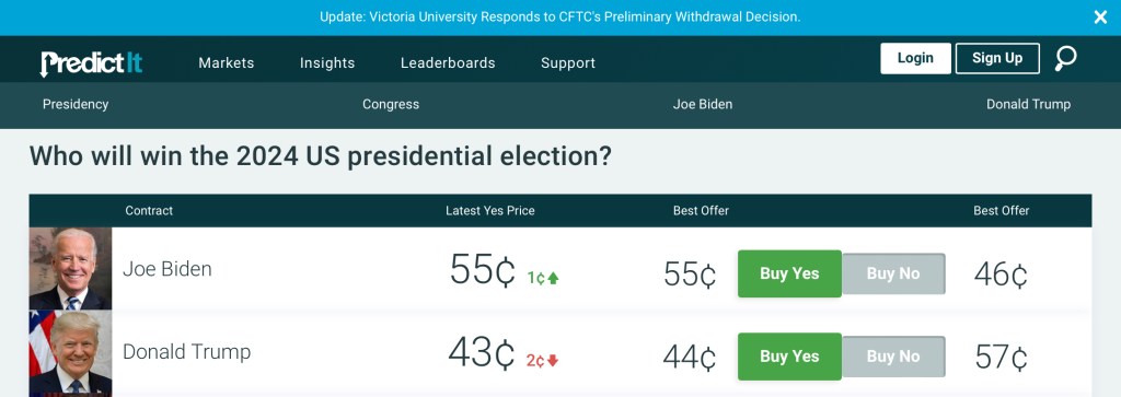 Not quite in where it matters… https://projects.fivethirtyeight.com/biden-approval-rating/ while Trumpy… https://projects.fivethirtyeight.com/polls/favorability/donald-trump/ . Statistical significance aside, Biden did improve in general poll setting, though, https://projects.fivethirtyeight.com/polls/president-general/2024/national/. But you really do have to disregard statistical significance to see that difference.