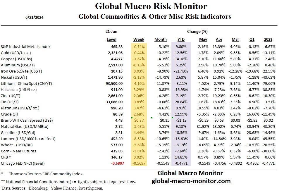 The global markets experienced mixed results for the week. Equity markets mostly rose, led by a rebound in European shares and Brazil, while bond yields exhibited slight increases. Currencies saw the dollar index strengthening slightly, with mixed movements among major currencies. Commodities showed varied performance, with notable gains in crude oil and platinum and losses in metals like nickel and zinc. Lumber was down 8.68 percent. Financial conditions continue to ease.