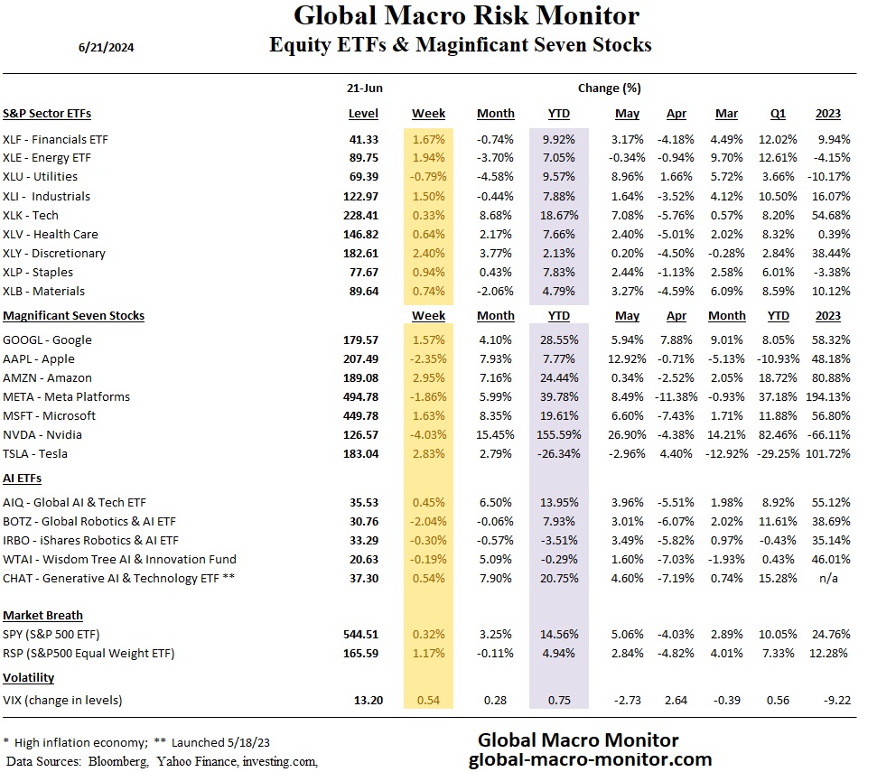 - Equal-weighted S&P (RSP) outperformed the S&P500 (SPY) by 85 bps