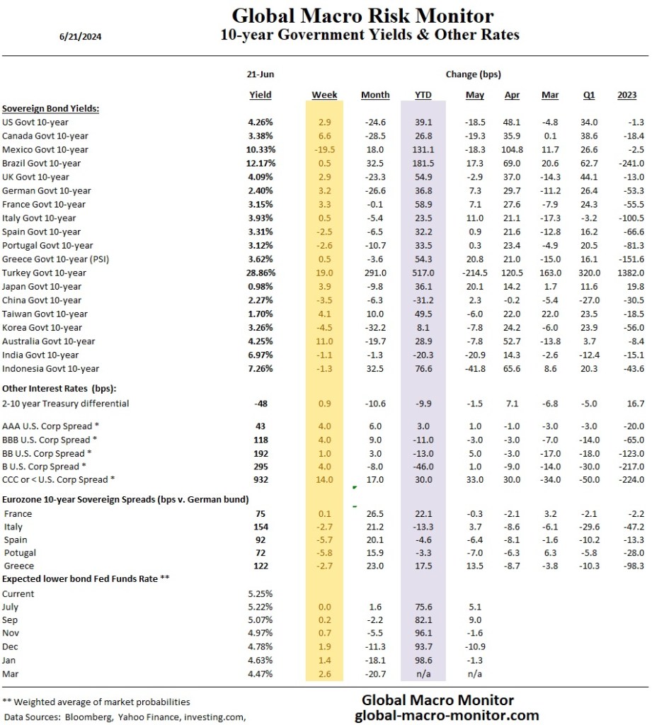 - Mexico 10-year yield fell by 19.5 basis points to 10.33%.