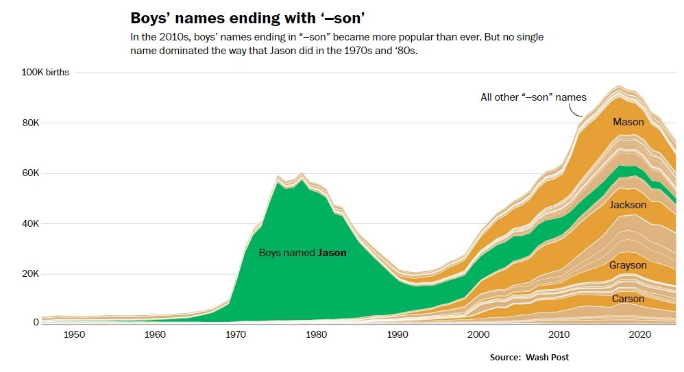 - Changing Trends: The popularity of names like ‘Jason’ in the 1970s has given way to a variety of names sharing similar suffixes like ‘son’ (Mason, Jackson, Carson).