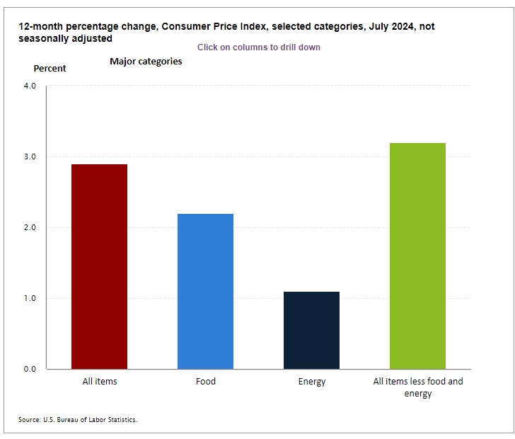 The Consumer Price Index for All Urban Consumers (CPI-U) rose by 0.2% in July on a seasonally adjusted basis, reversing the 0.1% decline in June. The annual increase was 2.9%, the smallest since March 2021. The shelter index was the main driver, contributing nearly 90% of the monthly rise, with a 0.4% increase. Energy prices remained flat after two months of decline, and food prices also saw a modest increase of 0.2%.