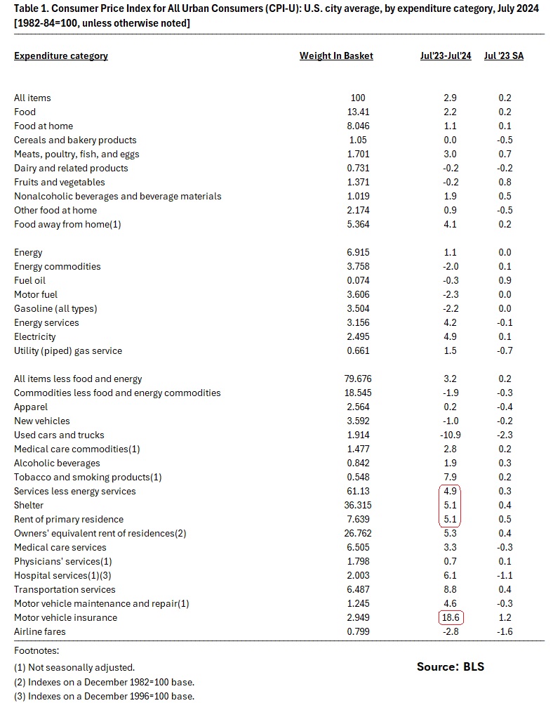 - Monthly CPI-U increase: 0.2% in July 2024.
