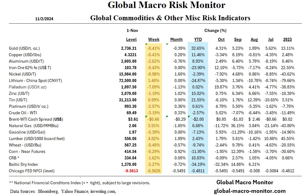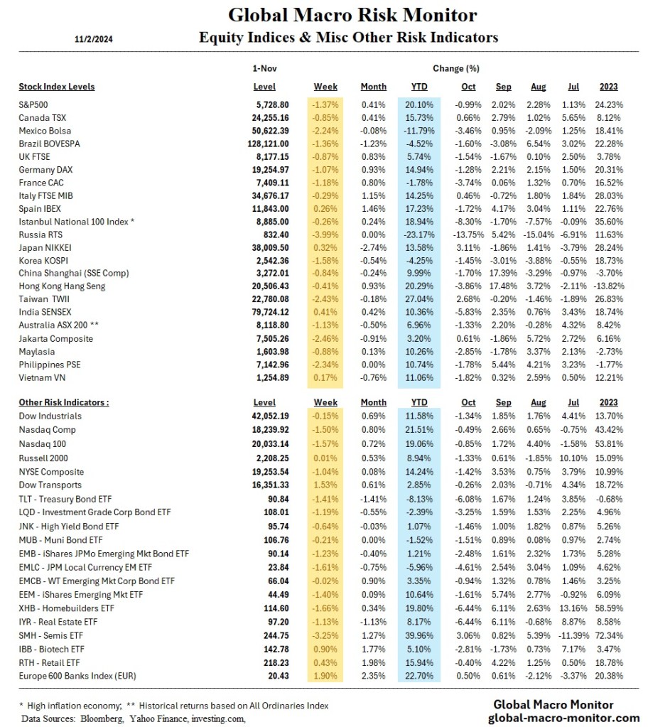 - Market Volatility: Bond market volatility is at its highest this year, with hedging activity spiking due to election and Fed-related uncertainties.