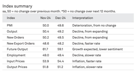 Global Manufacturing Contraction: The Global Manufacturing PMI fell to 49.6 in December, down from 50.0 in November, marking the fifth contraction in six months.