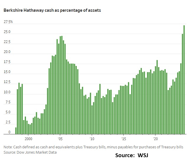 Buffett’s reluctance to deploy this cash, despite historically favoring equities, underscores his view that the market is dangerously overvalued. The S&P 500 has surged over 20% in consecutive years, yet Buffett has remained on the sidelines, signaling that valuations have exceeded reasonable levels. His repeated assertion that “nothing looks compelling” suggests that he sees few opportunities that justify the risk. Moreover, Berkshire has halted stock buybacks, another indication that Buffett believes prices are stretched.