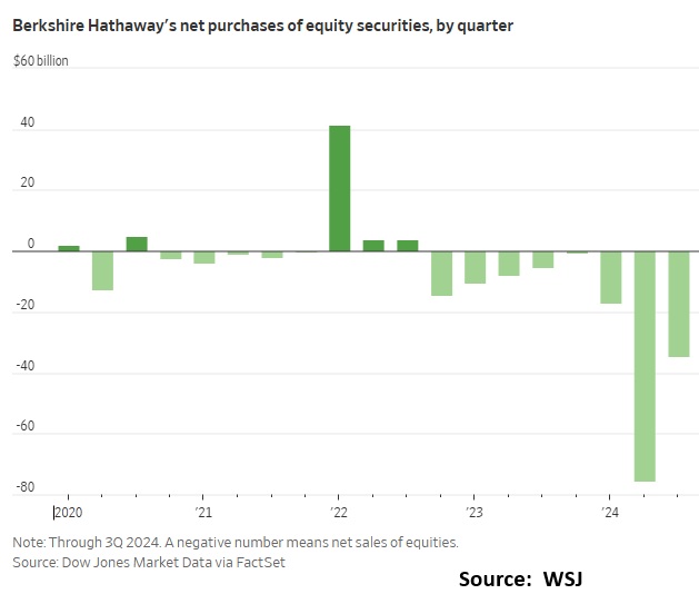 Warren Buffett’s recent moves in the stock market signal a strong defensive posture, one that suggests a serious market correction may be on the horizon. Over the past several years, Berkshire Hathaway has been a net seller of equities, shedding over $134 billion in stocks in 2024 alone, particularly trimming its holdings in Apple and Bank of America. Simultaneously, Buffett has amassed an unprecedented $334 billion cash pile, which the Global Macro Monitor estimates to be over 30 percent of BH’s total assets and his largest cash position ever.