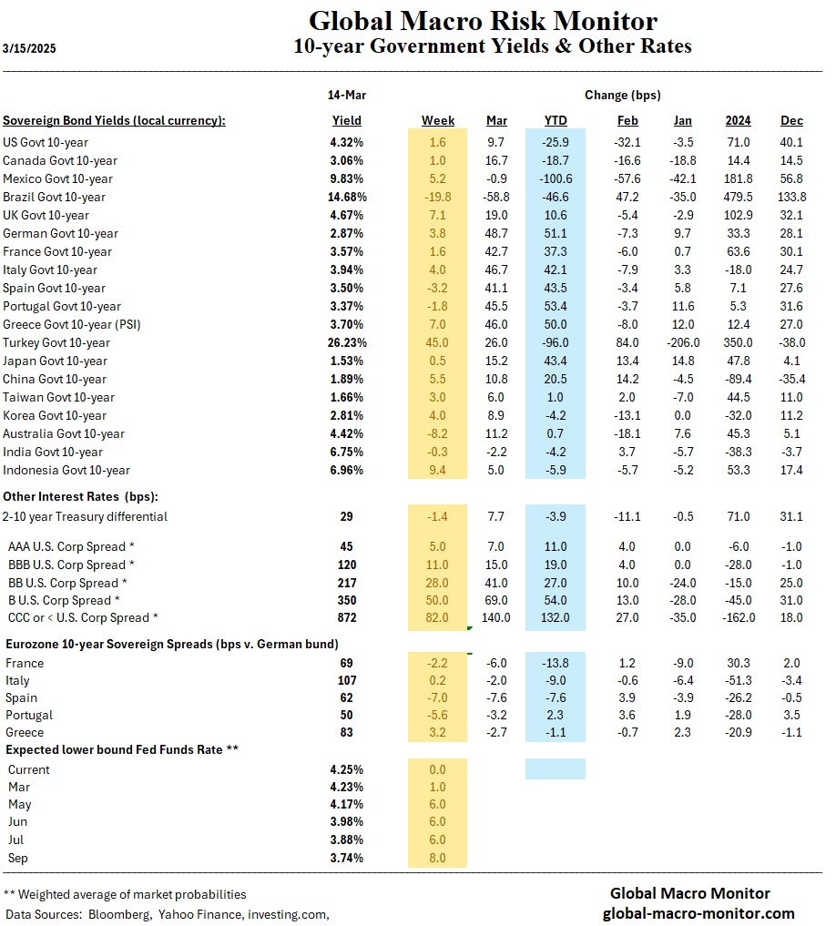 - China’s Deflation & Trade Woes: Data suggests prolonged deflation risks, with consumer prices falling 0.7% YoY in February. Trade uncertainty with the U.S. remains a concern for China’s manufacturing sector.