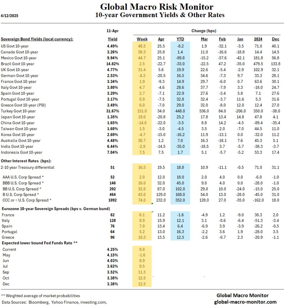 This capital flight reflects growing investor anxiety over both the economic impact and political incoherence of U.S. trade policy. In particular, the decision to impose sweeping and massive tariffs on China —then abruptly exempting $390 billion in consumer electronics, including smartphones and chips —undermines confidence in policy predictability. As revealed in the Friday night tariff exemption announcements, the White House walked back its own levies under intense market pressure, with Apple, Nvidia, and Microsoft among the major beneficiaries. While this move will spark another positive market response early next week, it also reinforces the perception that policy is being dictated by equity indices, not long-term economic goals.