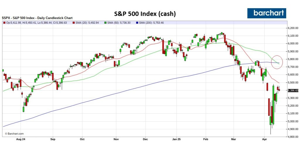 The S&P 500 will likely remain range-bound between 5200 and 5500 in the near term as market participants await more definitive indications of the economic impact stemming from current policy decisions. In our view, as signs of strain begin to emerge—whether through softening macro data, downward earnings revisions, or tightening financial conditions—the index will face renewed selling pressure. This will send the index for a retest of the April 7th low, with an elevated risk it will not hold.