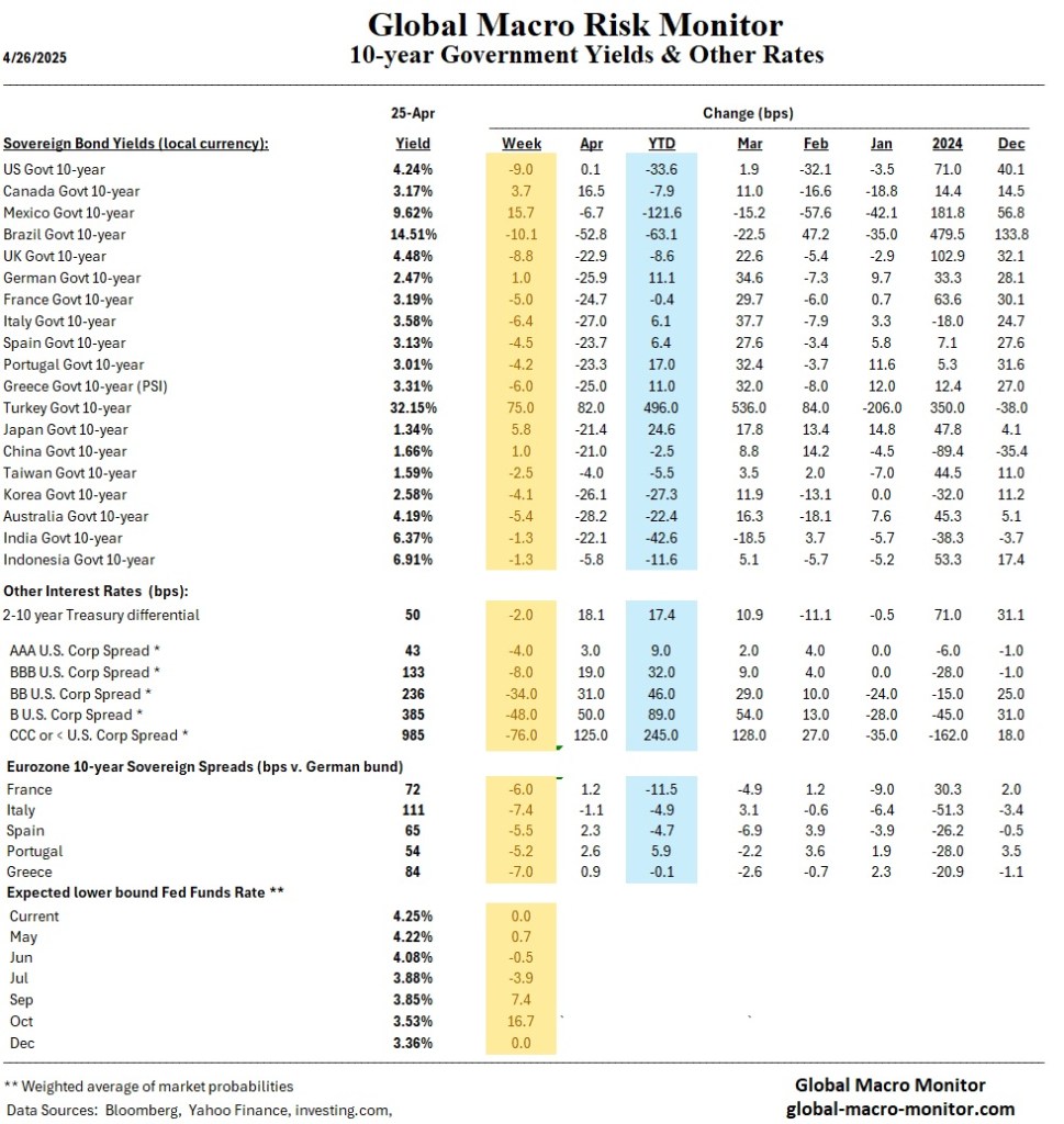 Looking ahead, while the recent rally in equities has been impressive, there are clear limits to upside potential unless there is a definitive resolution on trade. The markets are functioning on hope rather than substance. Earnings risks are rising, though Q1 is shaping up to be better than expected, economic indicators are softening, and monetary policymakers, including the Fed and ECB, are increasingly hamstrung by uncertainty.