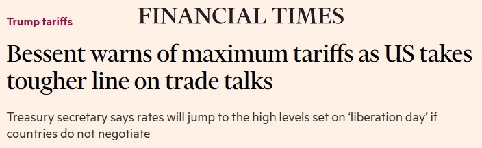 As we suspected in yesterday’s Global Risk Monitor, recent developments confirm a deteriorating trajectory in U.S. trade negotiations. Today’s Financial Times headline underscores the hardening U.S. stance, signaling heightened tariff risks for non-cooperative trade partners. This shift, when viewed alongside Moody’s downgrade of the U.S. sovereign credit rating announced post-market close on Friday, is likely to unsettle investor sentiment and amplify concerns over global economic stability.