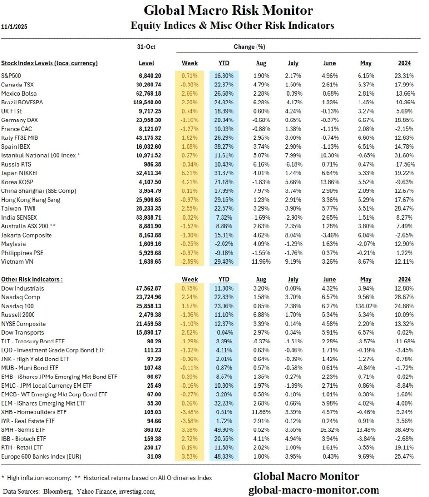 Markets are recalibrating expectations: central banks are still easing, but hesitantly; fiscal drag, trade frictions, and data gaps complicate visibility. Investors should expect volatility as the U.S. navigates the fallout from the shutdown, earnings season matures, and policy “fog” lingers into year-end.