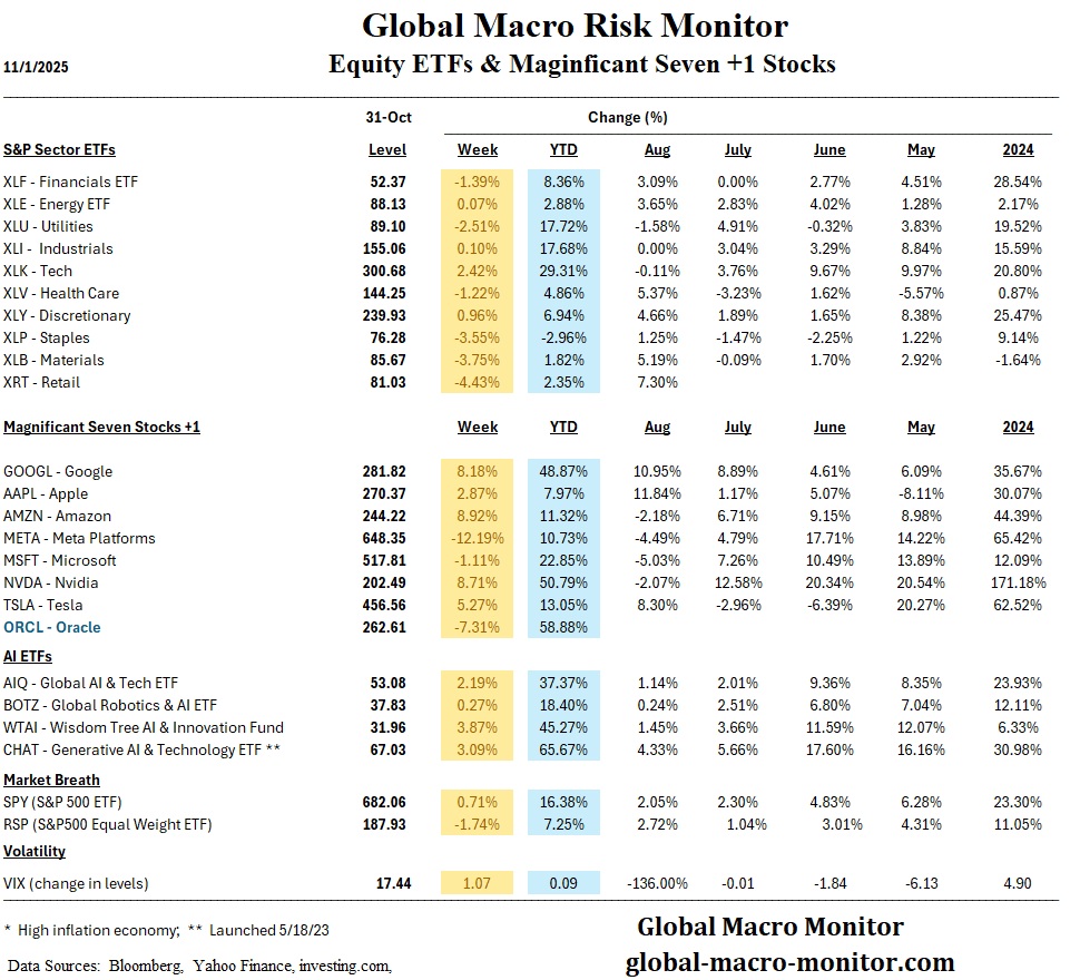 - Earnings season remains strong: roughly 82% of S&P 500 firms beat EPS expectations, with average EPS growth of 10.7%.