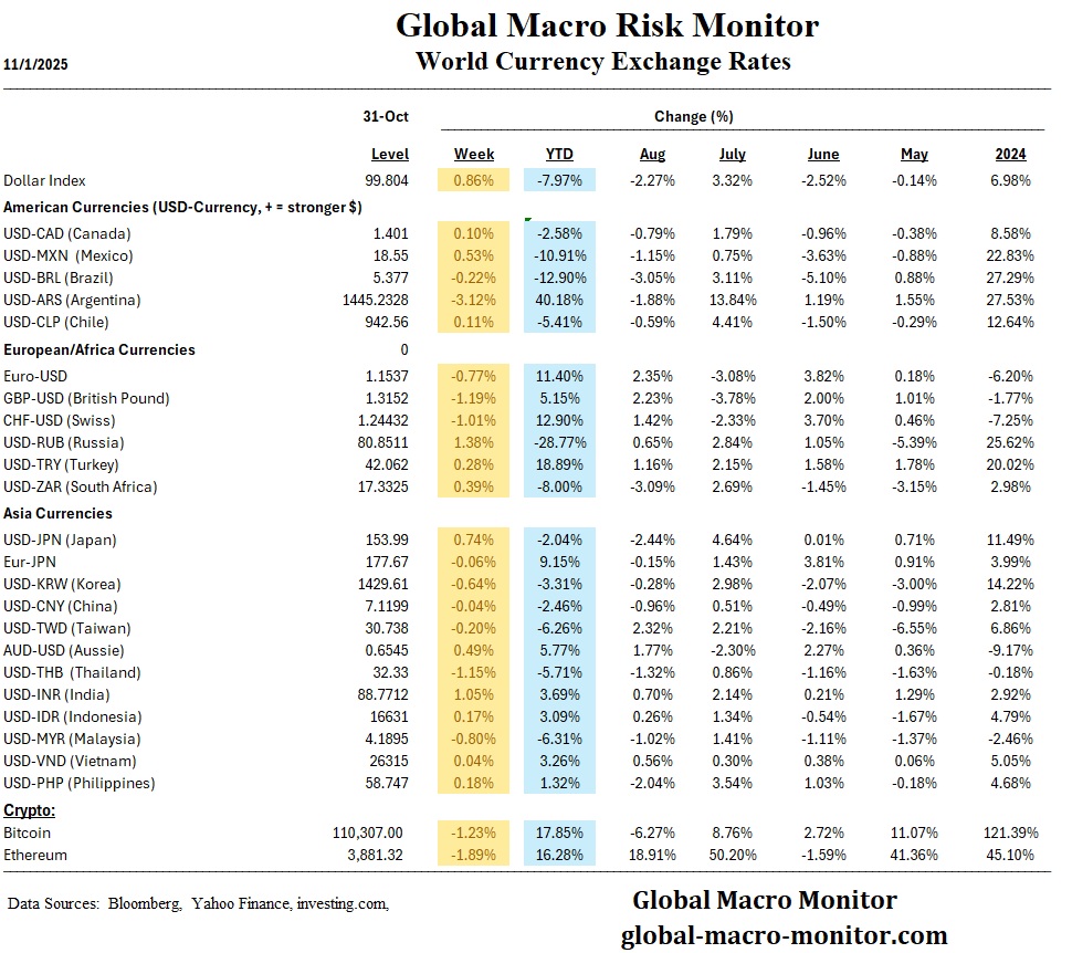 Global markets ended the week mixed as a U.S.–China trade truce and a widely anticipated Federal Reserve rate cut drove both relief and uncertainty. While U.S. equities held near record highs, global sentiment was tempered by uneven central bank actions and signs of slowing global trade momentum. Investors are navigating a “fog of policy”—one where monetary and trade decisions, rather than economic fundamentals, continue to dominate asset prices.