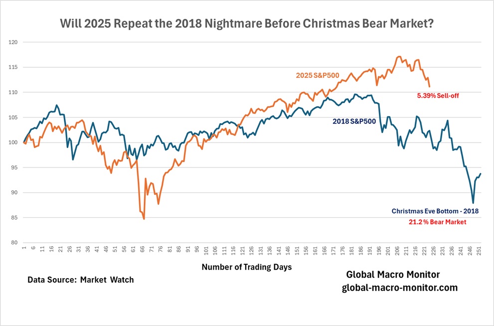 No one can foresee what comes next, but the speed and severity of today’s reversal invite a moment of reflection. For some investors, the abrupt shift echoes the unsettling tone of the 2018 “Nightmare Before Christmas” bear market. That episode only finally came to an end on Christmas Eve, when Fed Chairman Jay Powell—after months of relentless pressure from President Trump—stepped back and began to ease up on monetary policy, effectively marking the capitulation that turned the tide.