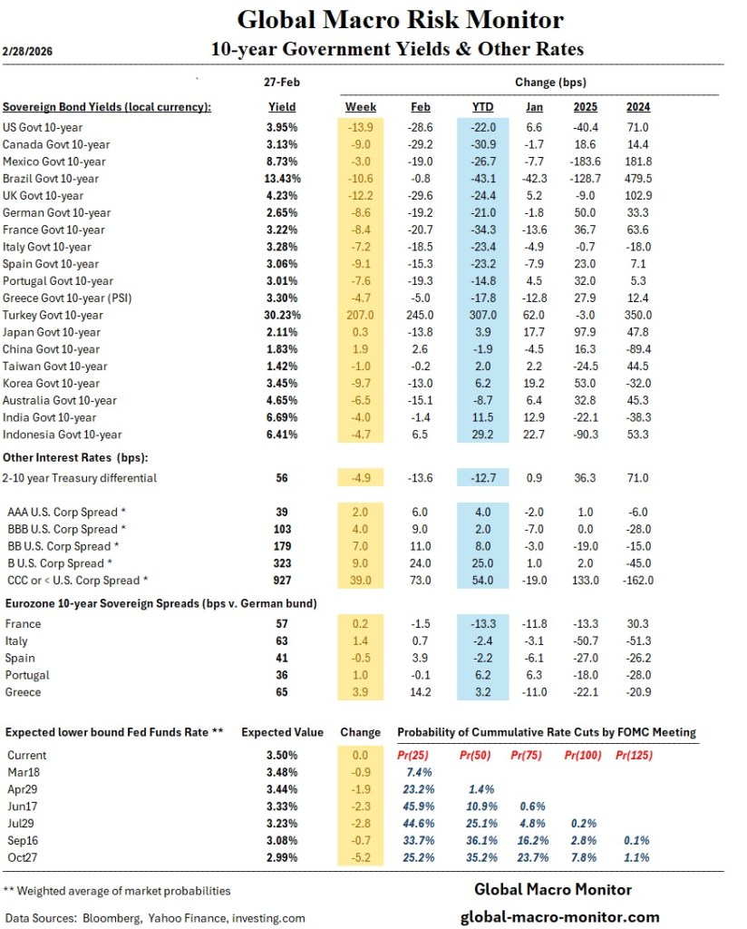 Bond markets reinforce this instability. A global rout has pushed yields sharply higher (U.S. +50 bps, UK +70 bps, Italy +80 bps), while rate expectations have flipped from cuts to a non-trivial rate hikes. This is a classic late-cycle stress signal: tightening financial conditions colliding with weakening growth.